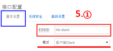 5.同“接入點(diǎn)”訪(fǎng)問(wèn)方式一樣,訪(fǎng)問(wèn)另一個(gè)網(wǎng)橋設(shè)備,然后在網(wǎng)絡(luò),無(wú)線(xiàn),點(diǎn)擊修改,接口配置,基本配置和無(wú)線(xiàn)安全內(nèi),設(shè)置模式為“客戶(hù)端Client”,同時(shí)按照“接入點(diǎn)AP”網(wǎng)橋的ESSID名稱(chēng)、加密模式和密碼來(lái)設(shè)置。