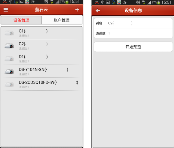 先登錄螢石云賬戶,然后選擇想要預(yù)覽的設(shè)備進(jìn)行查看視頻。