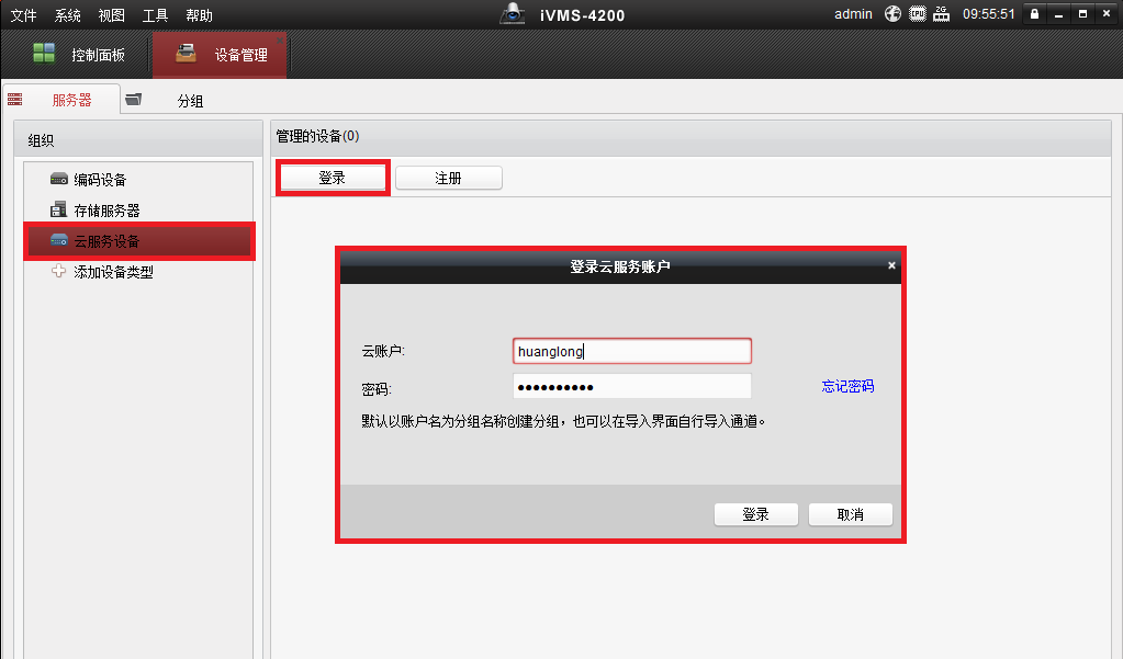 三、用ivms4200登錄螢石云賬戶。